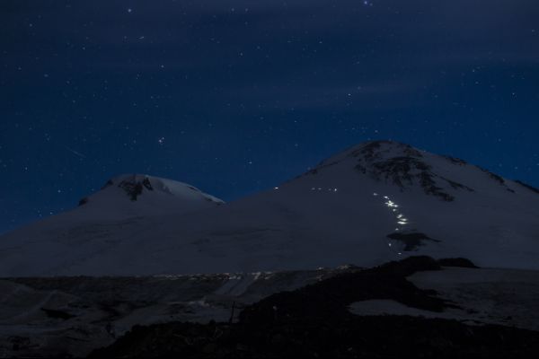 Выше нижнего лагеря (поселок Терскол) мы передвигаемся только с опытными гидами и выполняем все их команды. Особенно во время восхождения.